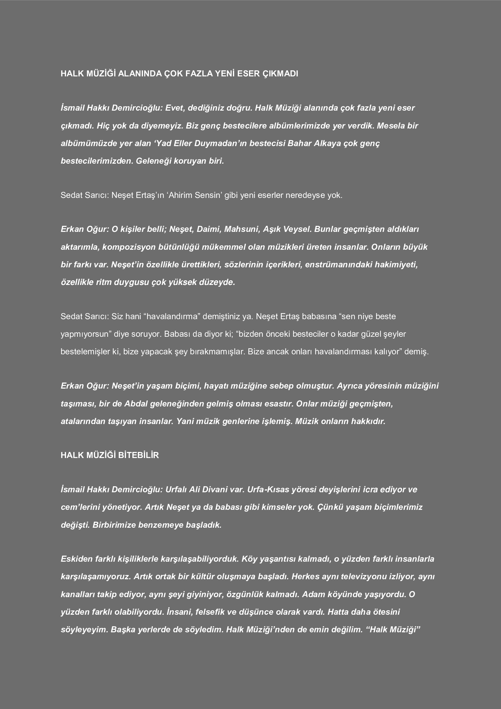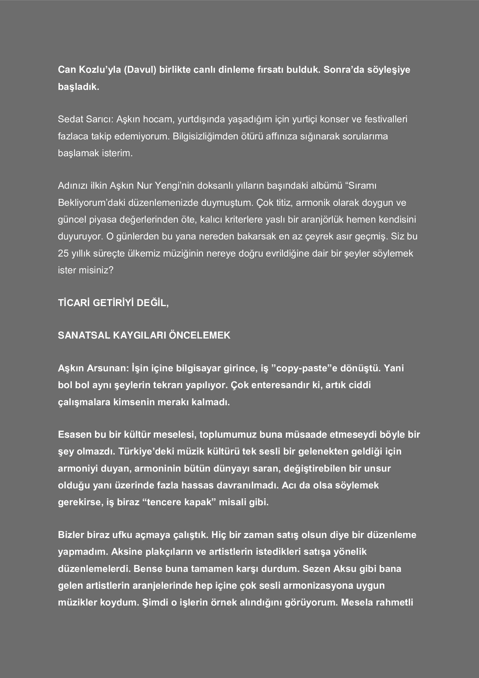 Makaleler ve Söyleşiler