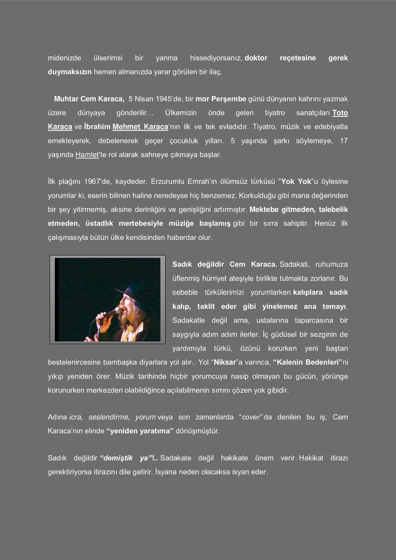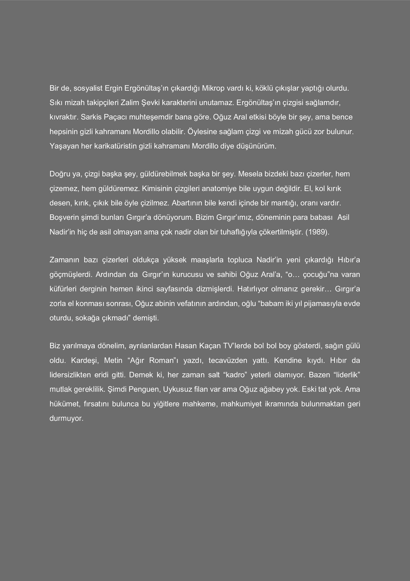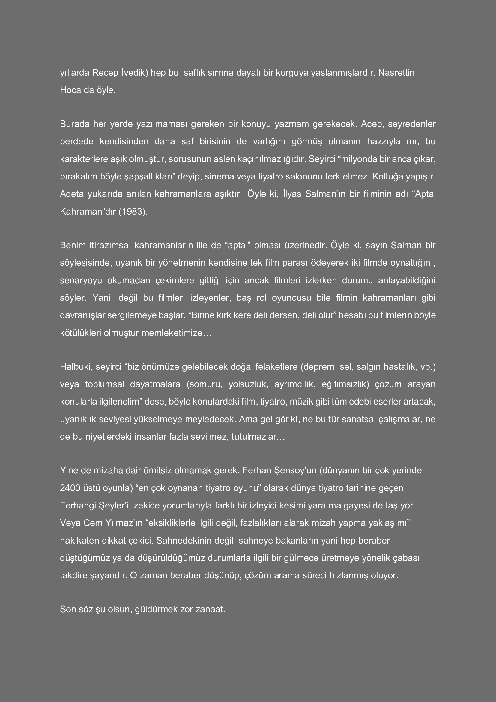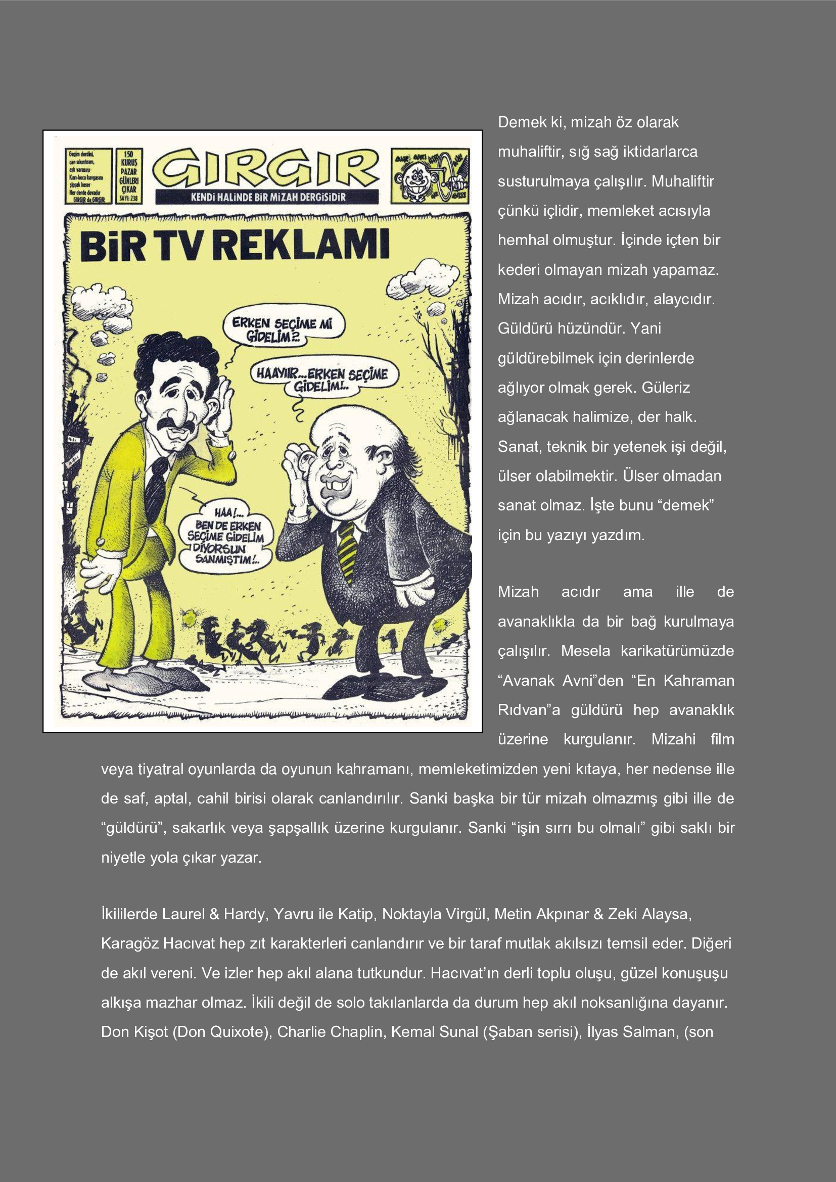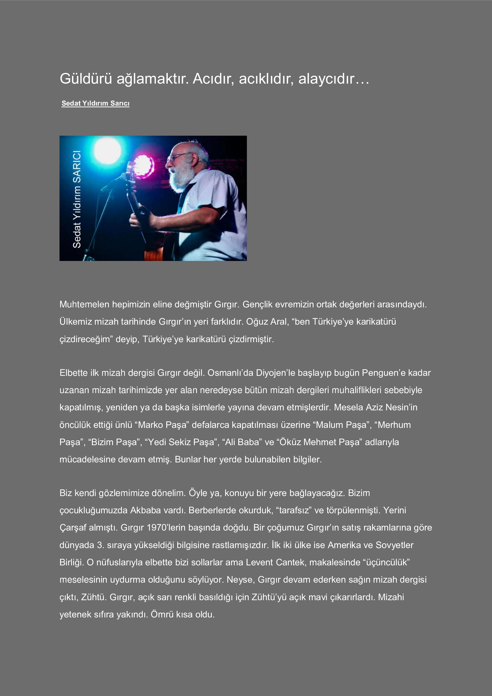 Güldürü ağlamaktır. Acıdır, acıklıdır, alaycıdır...