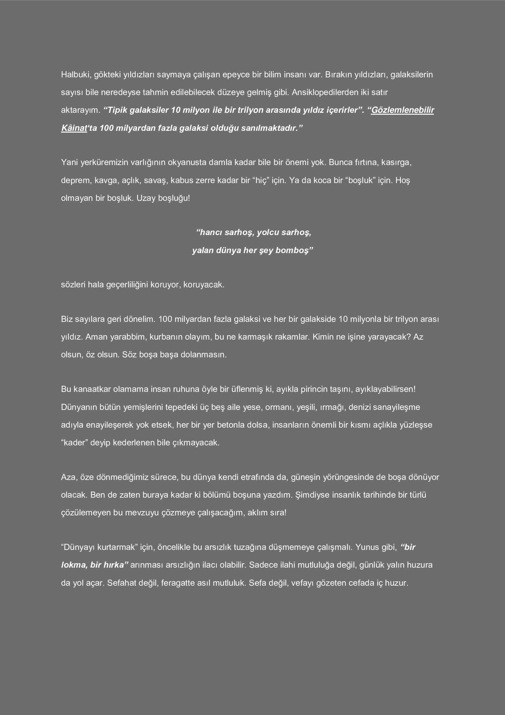 Kainat, Kanaatkar Değil, Arsızdır!