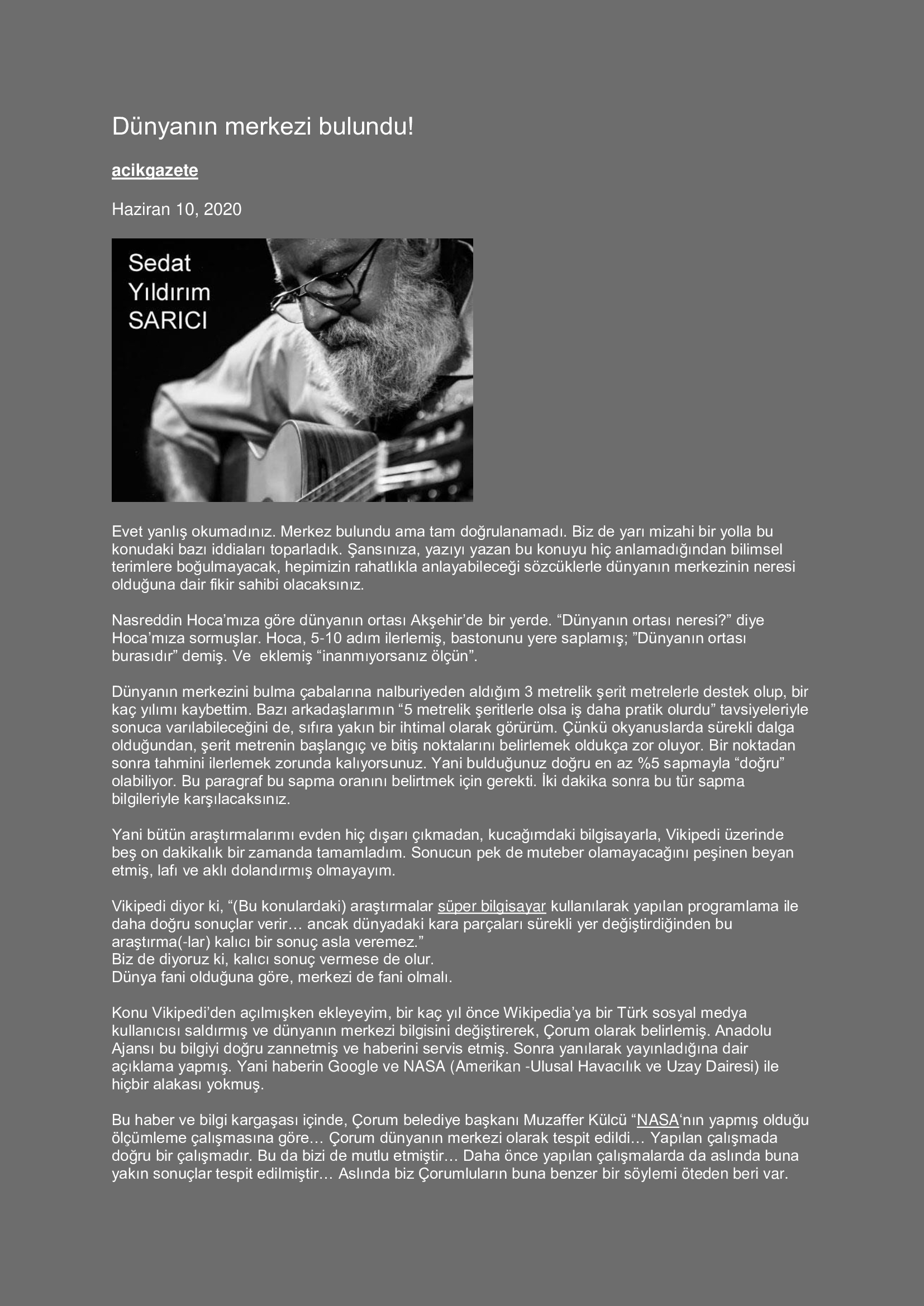 Dünyanın Merkezi Bulundu